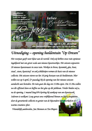 Opening Beeldentuin 2e Paasdag 2026
